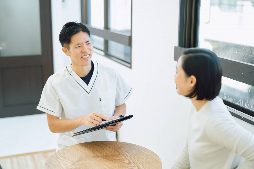 まずは症状を話し、体の状態をチェックしながらカウンセリング。