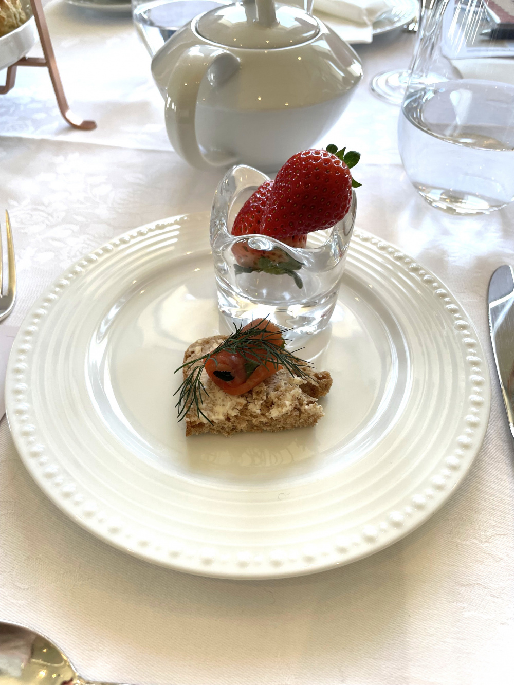 スモークサーモンとチーズのオープンサンドや、生ハムを合わせた桜のフィナンシェなども、スイーツの合間にちょうどよい、上品な美味しさでした。