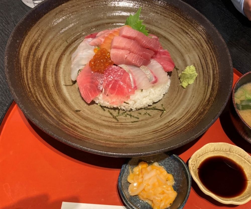 私はお刺身盛り合わせ定食(1,200円)、友人はスペシャル海鮮丼(1,400円)を注文。