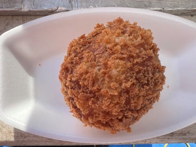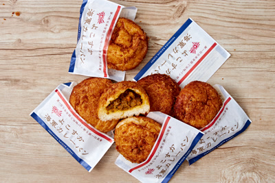 横須賀名物海軍カレーのカレーパン。福神漬けの歯ごたえがアクセントとなり唯一無二の味わいに。揚げたてをぜひ!