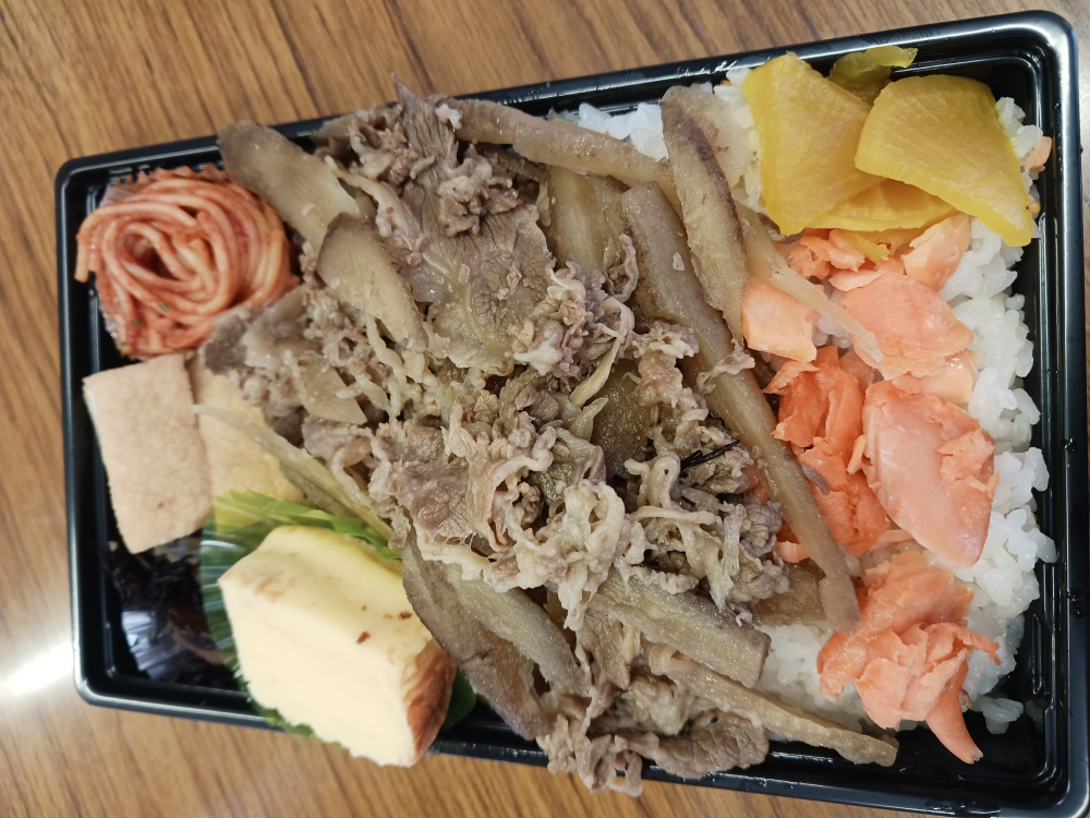 牛ごぼうと鮭弁当