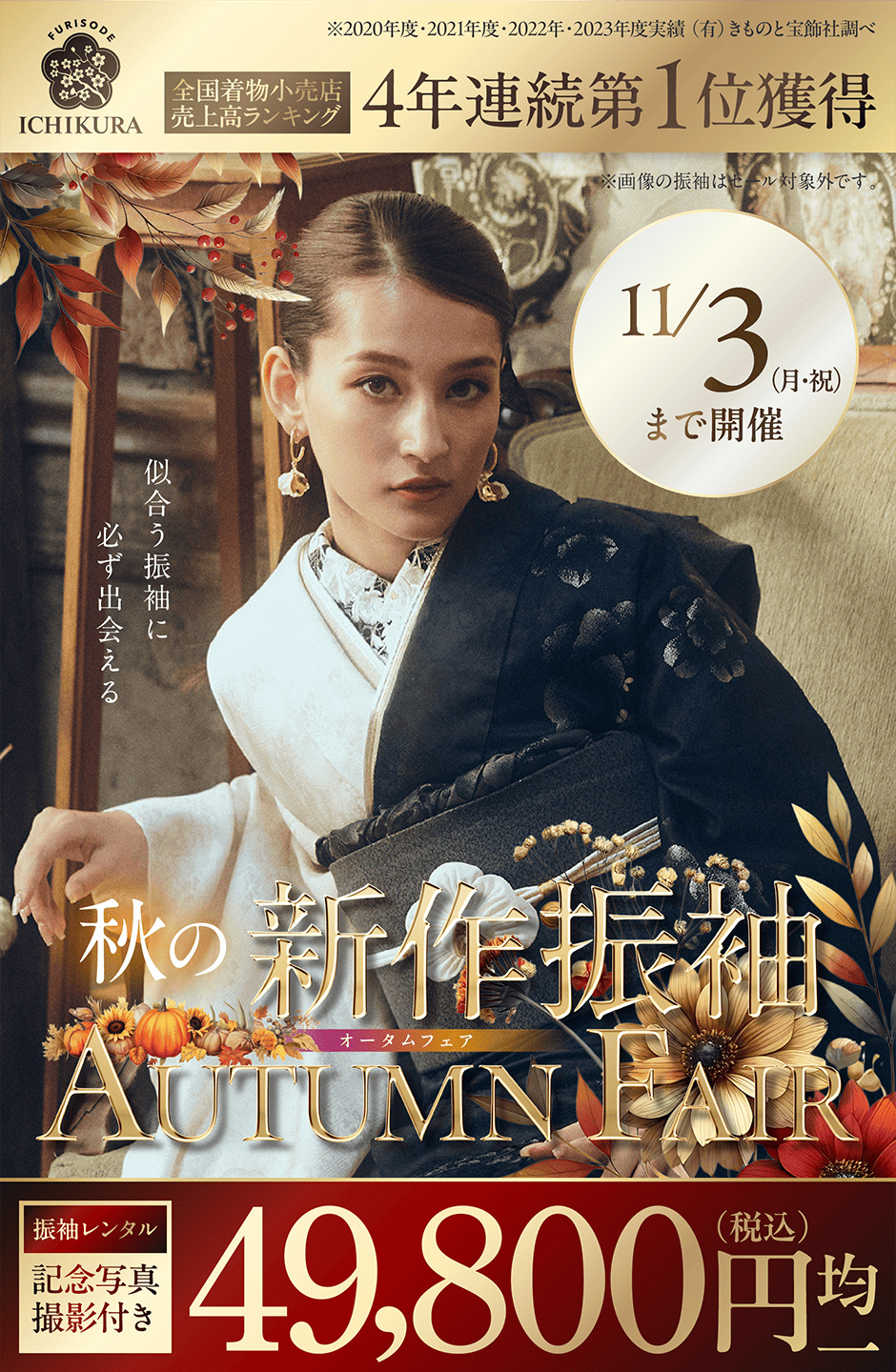 秋の新作振袖 AUTUMN FAIR 開催! 振袖レンタルセット49,800円~