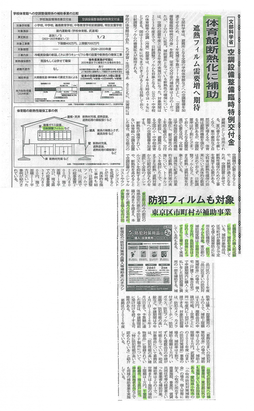 2025/10/01 ★体育館の断熱化へ補助金(全国)★防犯フィルムに補助金(東京都他)