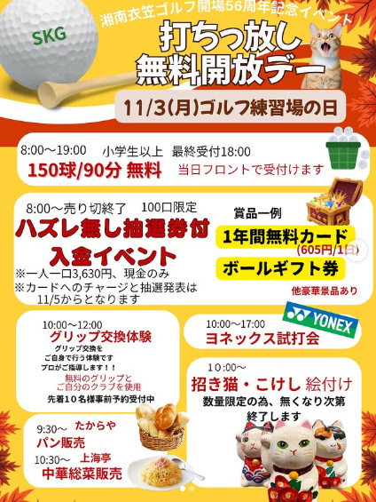 2025/10/29 <11/3>湘南衣笠ゴルフ 56周年記念イベント開催!