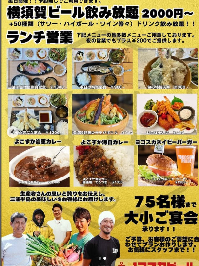 店内に醸造所(ブルワリー)を設け、一から作るビールは格別!走水の湧水や地場産の小麦や生姜などを取り入れたオリジナルのクラフトビールが楽しめます。また、当店だからこそ提供できる三浦半島の食材の良さを生かしたメニューの数々・・・ぜひ美味しいビールと料理を一緒に味わってください。