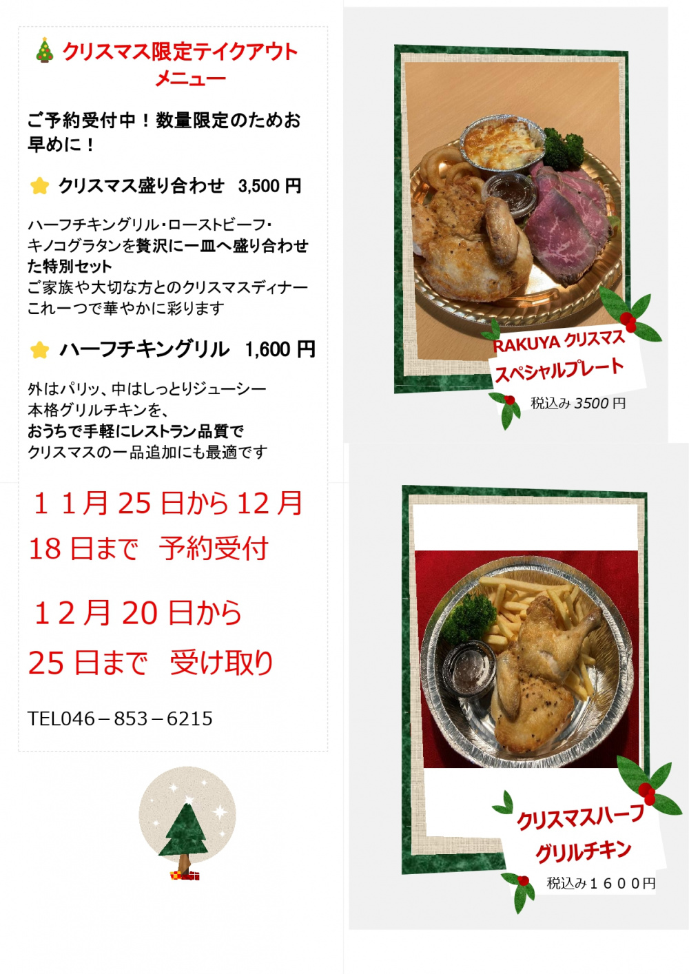 2024/12/03 Rakuyaのクリスマスセット&テイクアウトメニュー