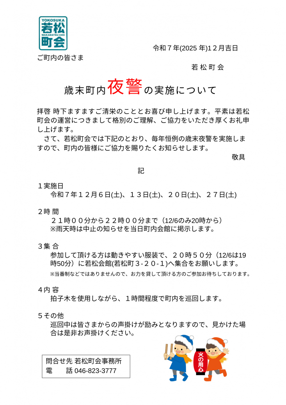 2025/11/29 12月若松町会よりお知らせ