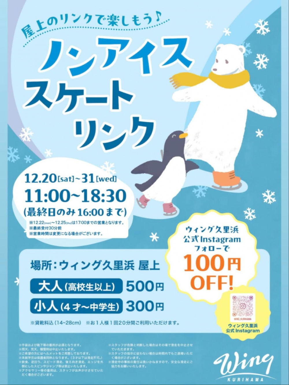 ※ ウィング久里浜公式Instagramをフォローで、1名様100円引き