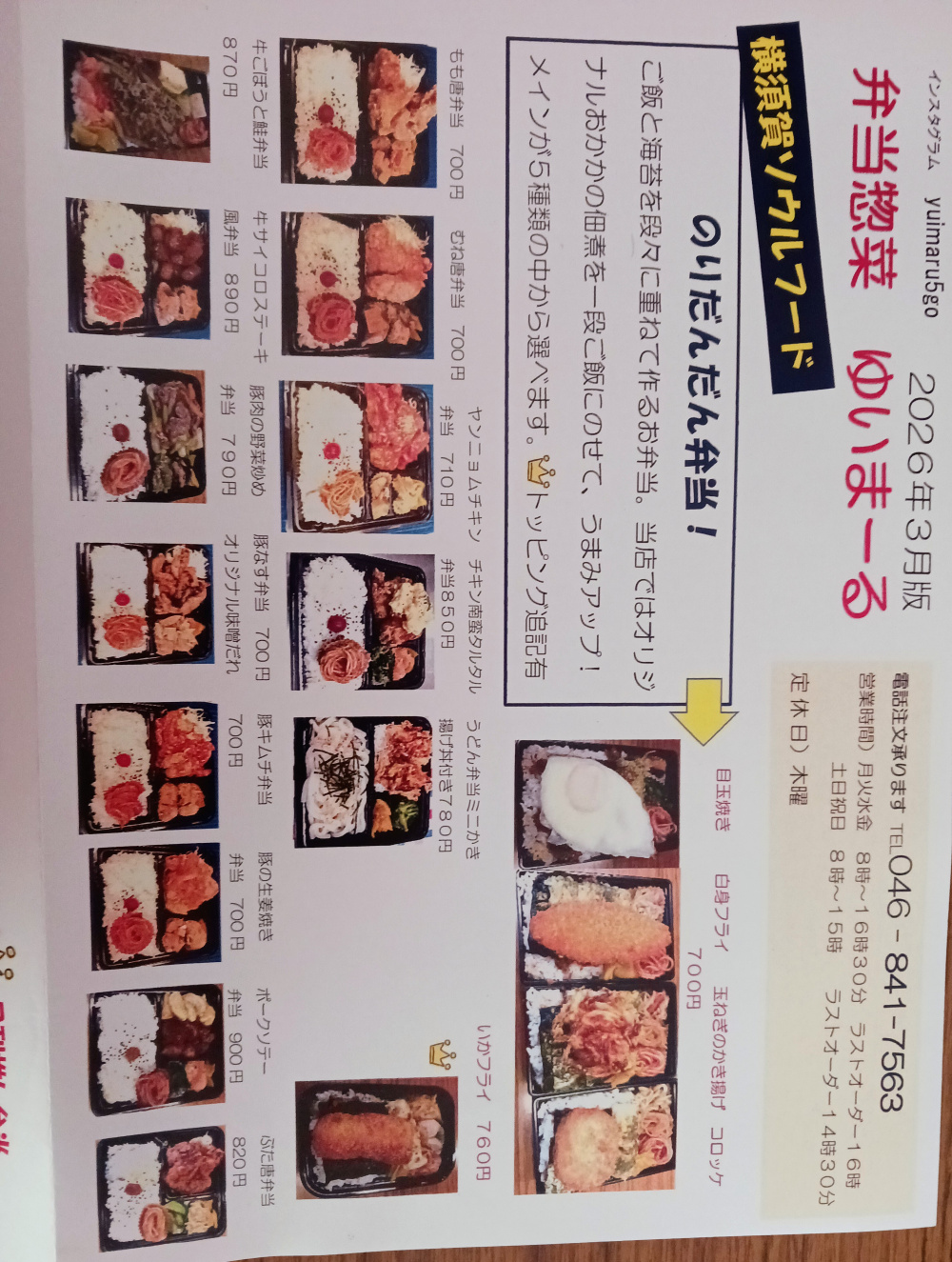 京急浦賀駅徒歩3分、地元住民行きつけのお弁当惣菜店『弁当惣菜ゆいまーる』。