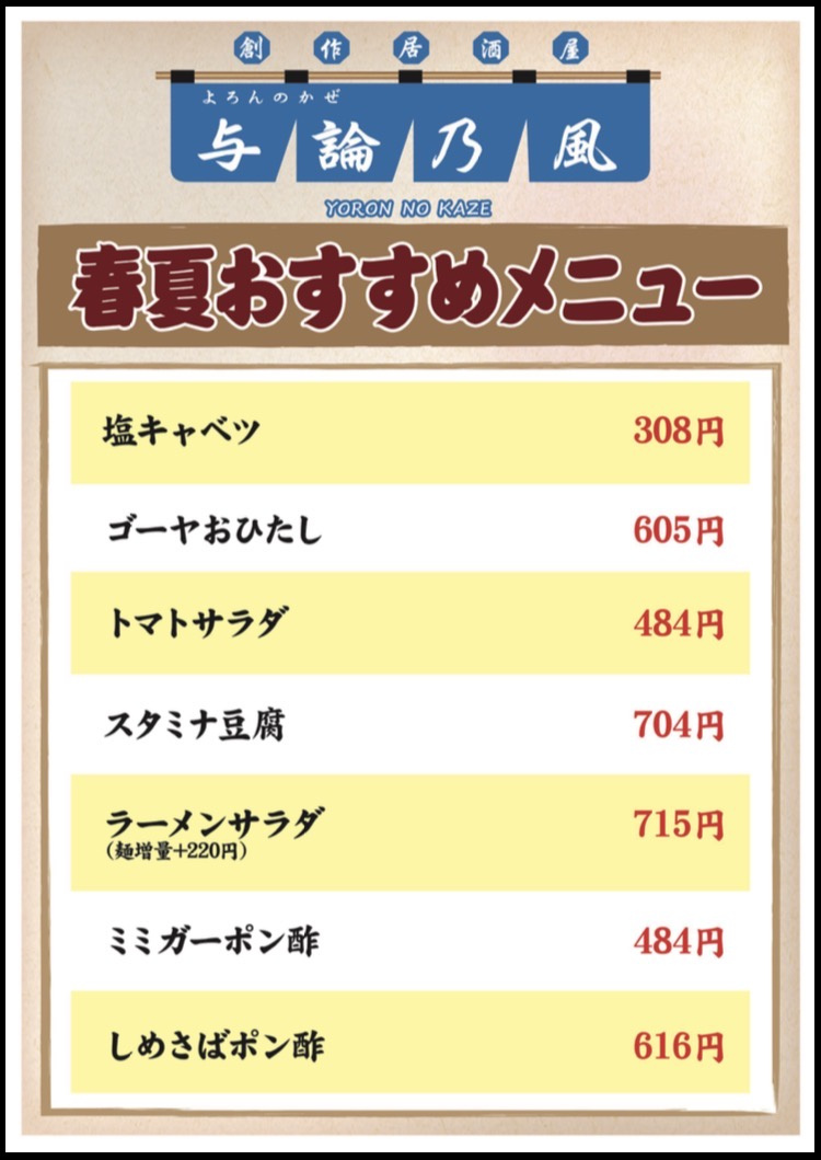 | 営業時間 | 14:00~21:00/金曜 14:00~22:00/土曜 13:00~22:00/日曜 13:00~21:00 ※閉店の1時間前ラストオーダー 変更がある場合はGoogle与論乃風又はライン与論乃風でお知らせ致します(当日は店舗にご確認ください) お問い合わせ専用090-7420-7021 |