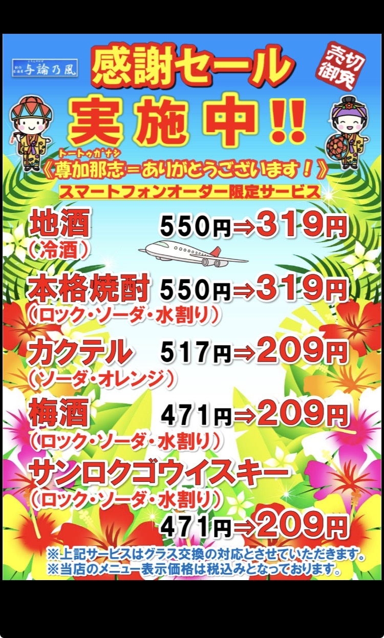 ヨコスカイチバン与論乃風感謝券クーポンをスタッフにご提示ください (注意)当日は対応出来ませんが次回ご利用ください ...