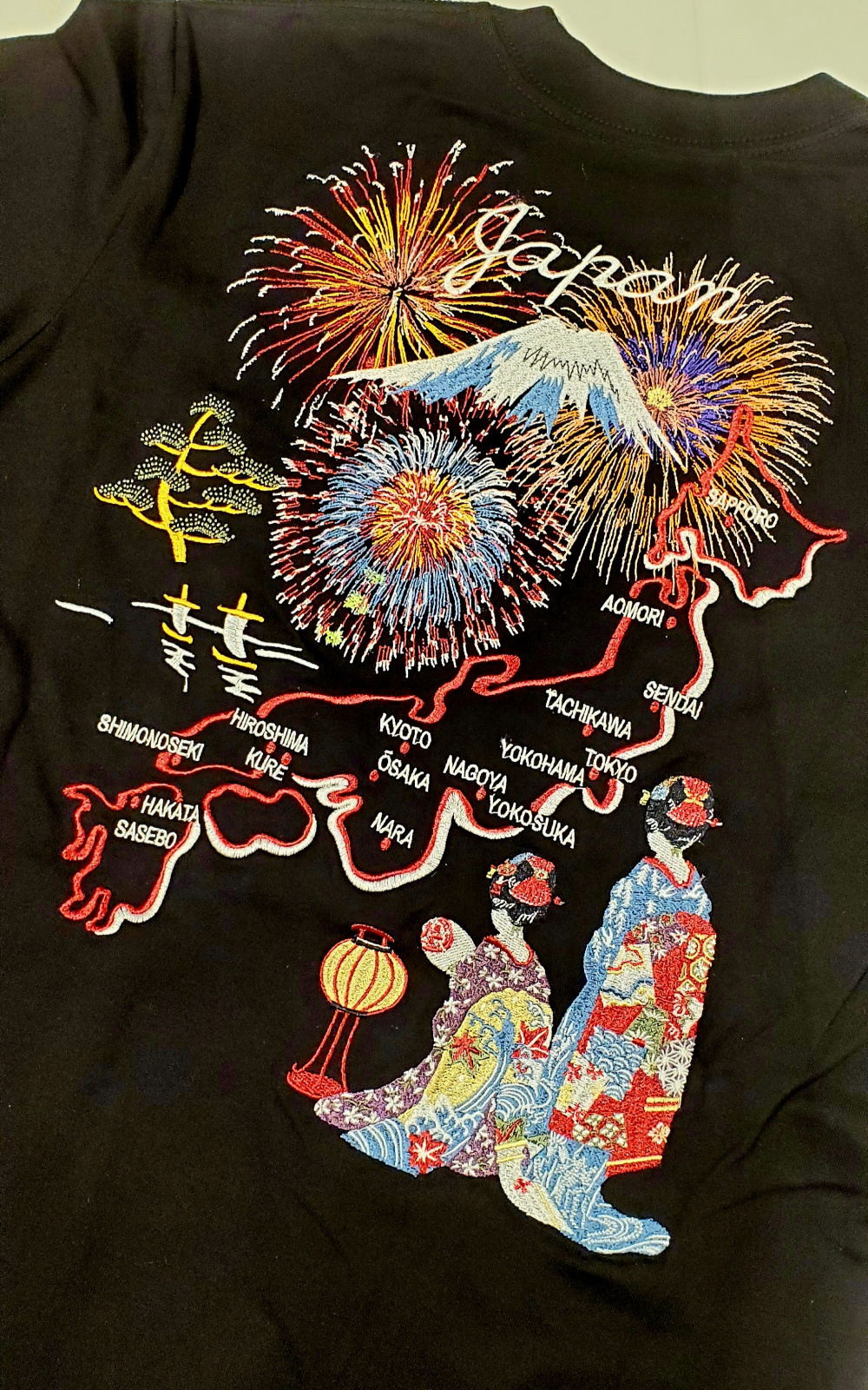 横須賀Tシャツ【スカティ】は、商標登録第4502019を取得し、デザインから刺繍まで、全て当店でお作り致しております。コンピューターミシンではなく、横振りミシンで刺繍職人が1枚1枚縫い上げる手作りならではの温かみがあって丁寧で本格的な物作りをしております。地元・横須賀の観光みやげとして、ここでしか手に入らない横須賀を感じる物作りを商品化しております。土地柄、海外のお客様も非常に多く、お土産だけでなく、職人の技の素晴らしさには定評がございます。