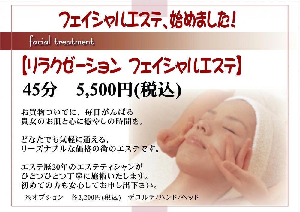 眉スタイリングやメイクサービスやレッスン、気になる部分はエステでケアします。