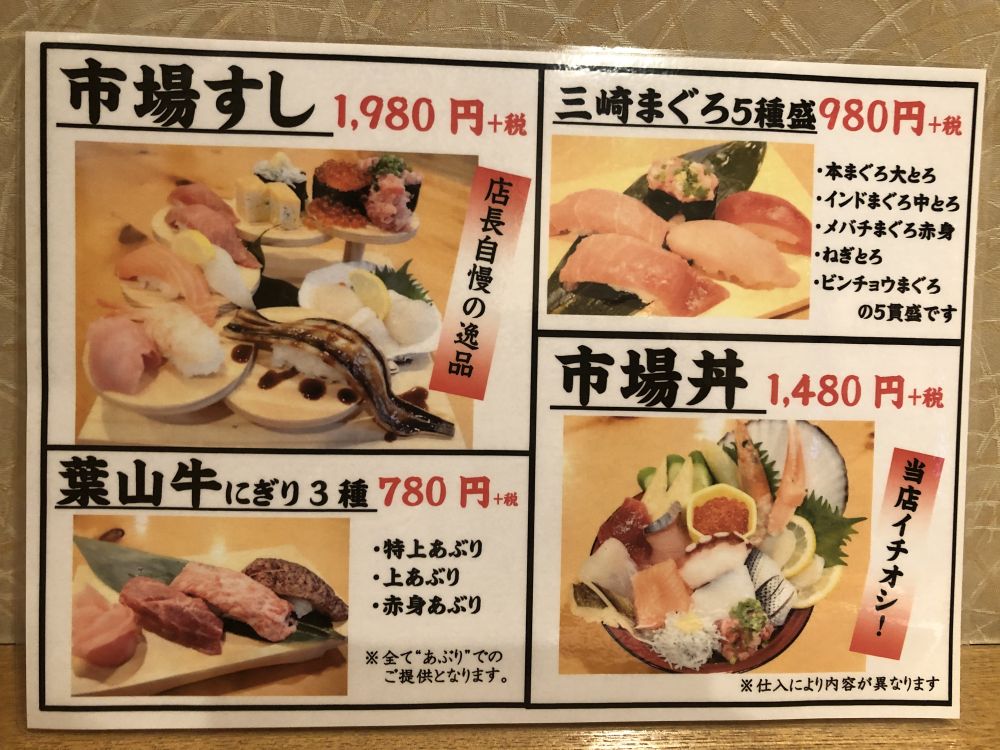 店長おすすめの逸品、「市場すし」
