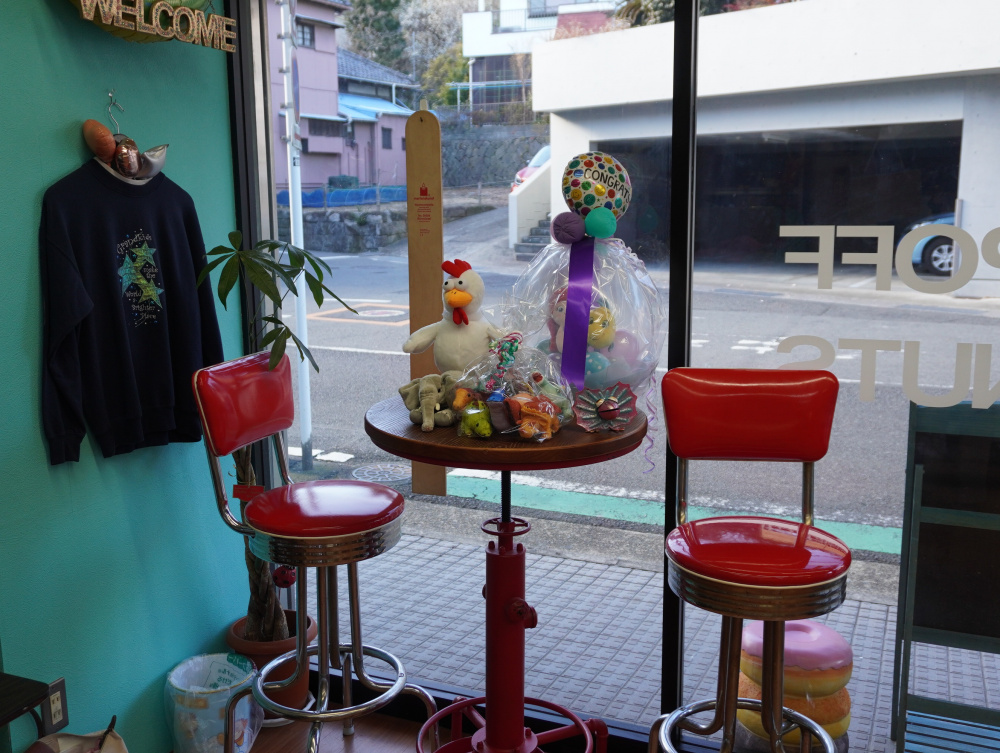 イートインもできるので、ワクワクするアメリカンな店内で美味しいドーナツを食べながら、楽しい時間を過ごしていただくこともできます。