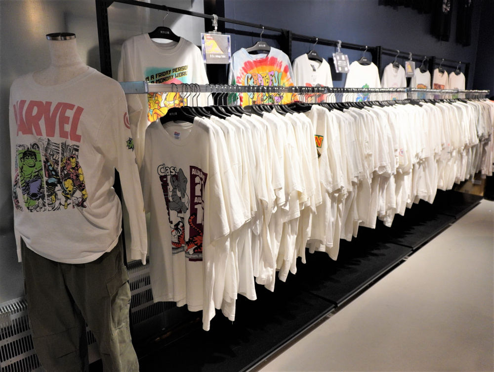80’s・90’sのTシャツを中心に、シャツ、スウェット、フーディ、アウターなど幅広くラインナップ。