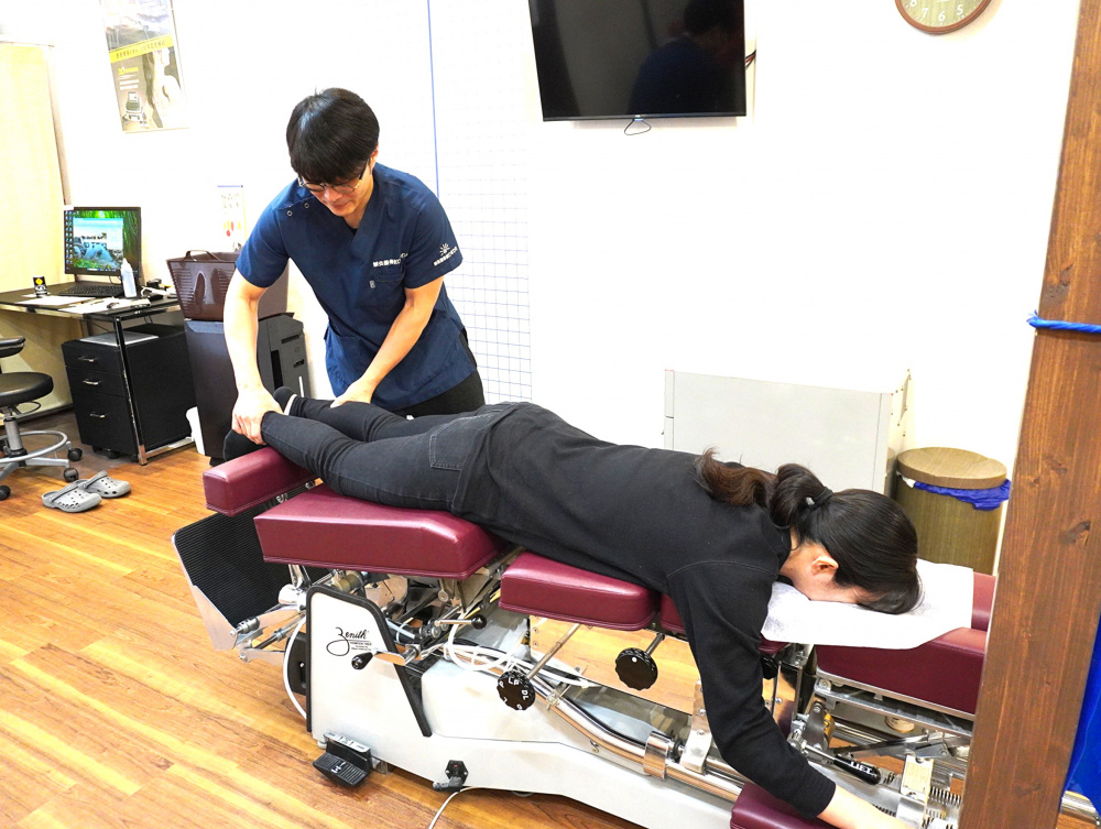 トムソンテーブルによる骨格矯正で姿勢を整え、筋肉の緊張を根本から改善します。