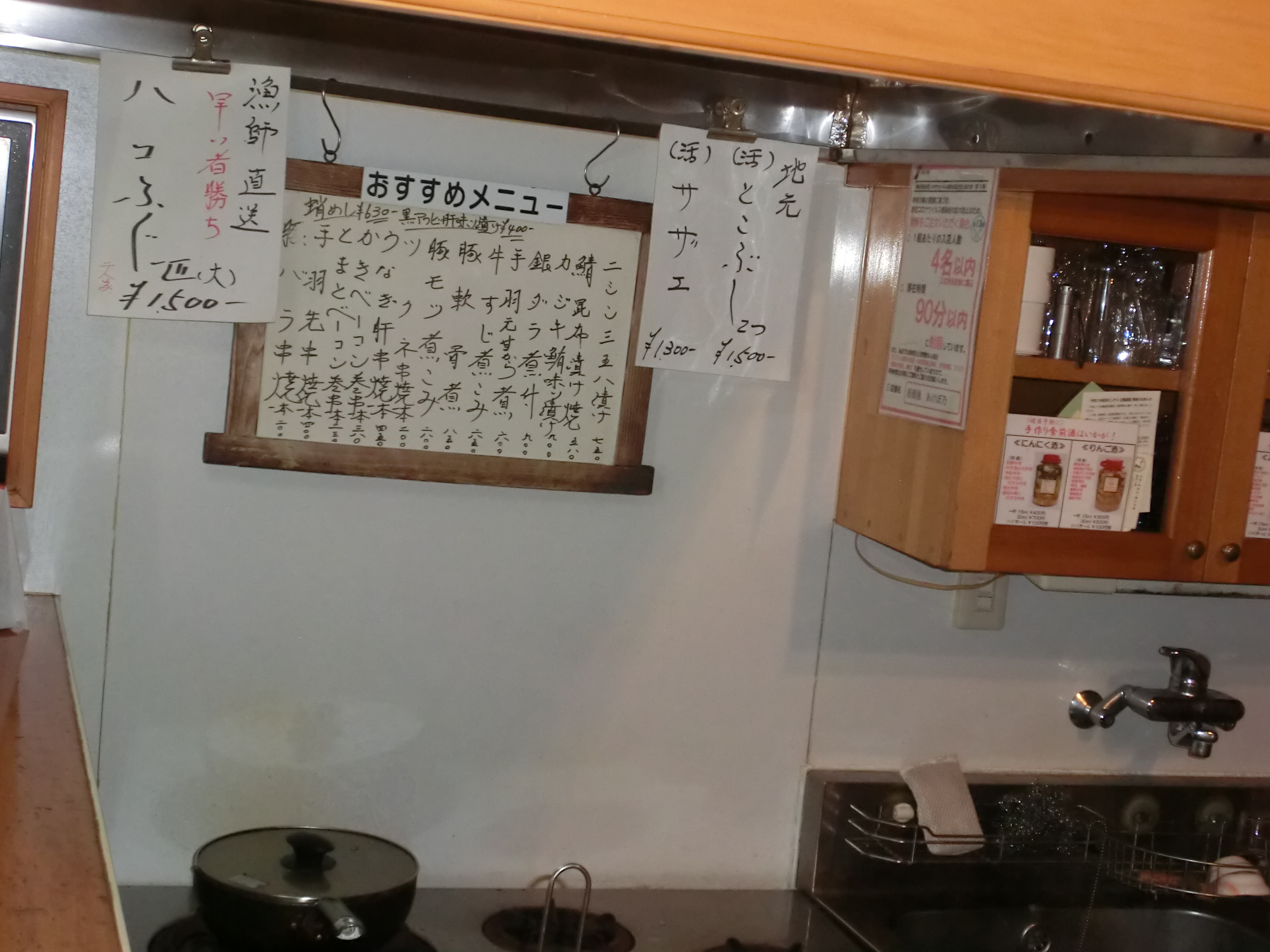 | その他 | オニオンの丸ごと煮(コンソメ味 弱火でじっくり煮込みました。是非一度ご賞味を!!) 貝類は店の水槽で十分な砂抜きをしています。味が良いとお客様に褒められます。 有線放送 昭和時代の曲多し 店入り口は常にお花を欠かしません。通る人にも褒められています。 |