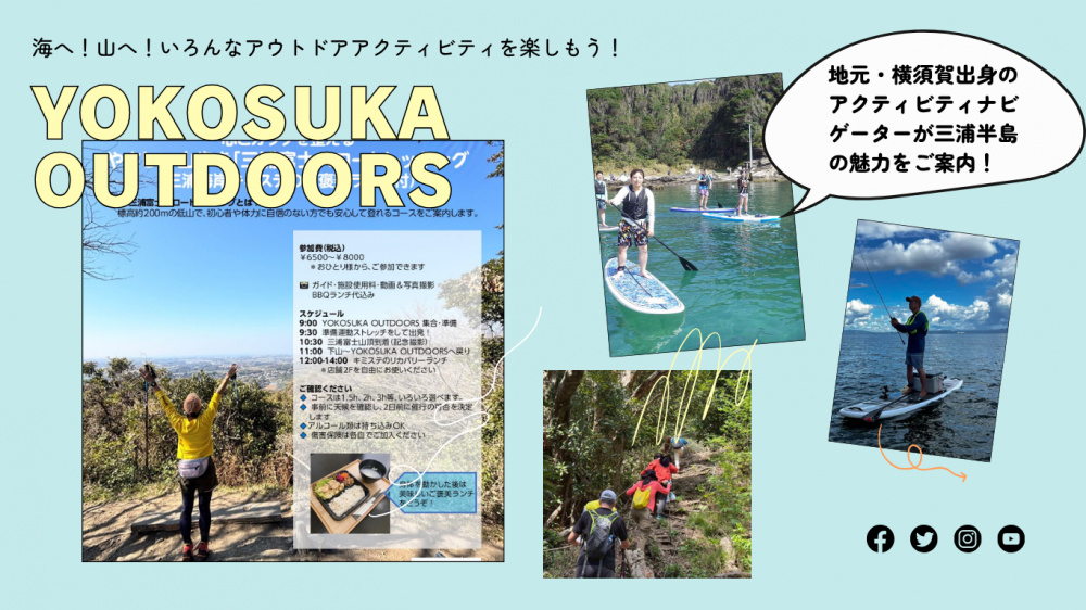「YOKOSUKA OUTDOORS」では、“やさしいアウトドア体験”を楽しめますので、気軽に自然の中へ飛び出して、心と身体をゆるめることができます。