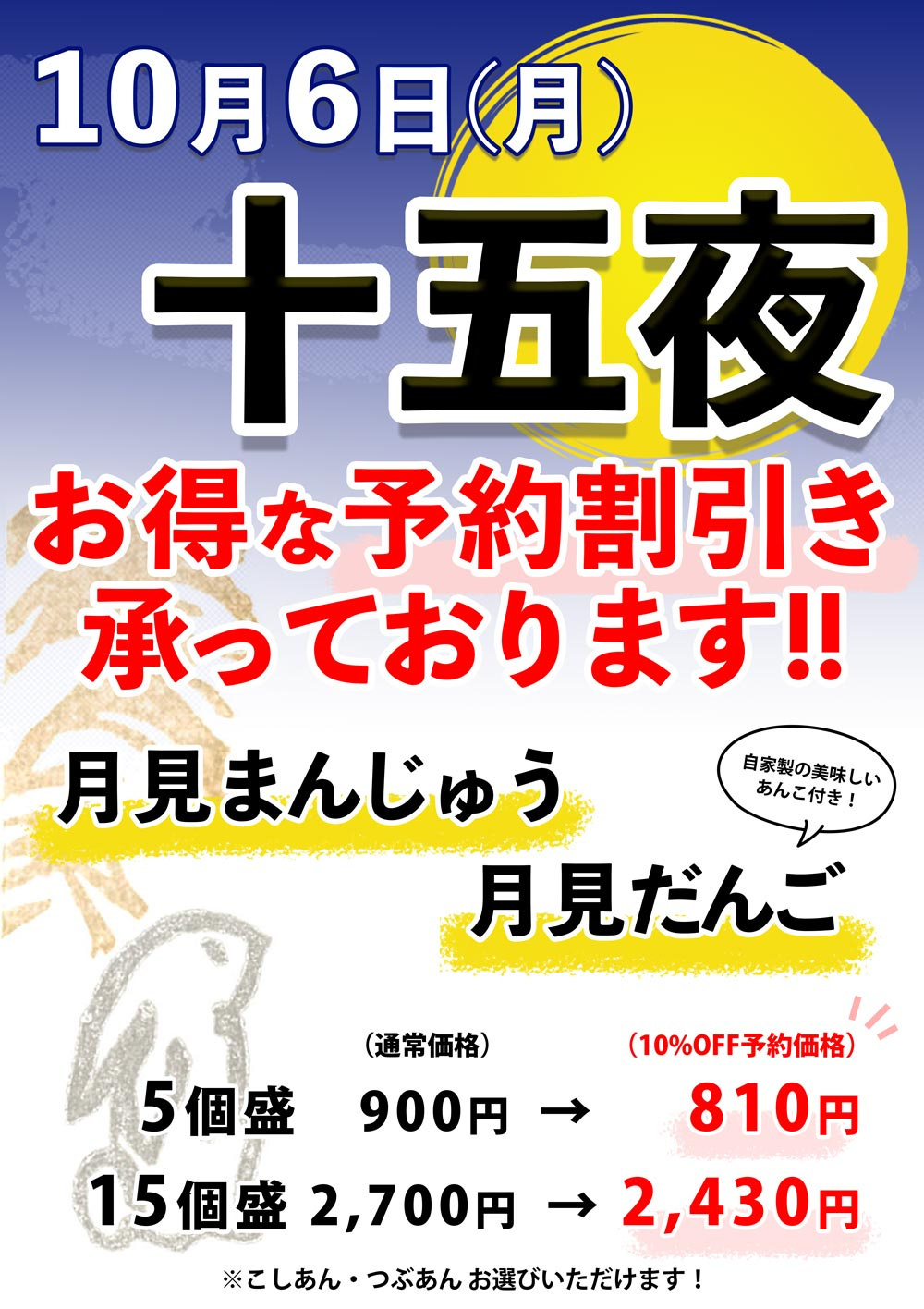 <10/5まで>【十五夜】月見まんじゅう・月見だんご予約10%OFF/いづみや