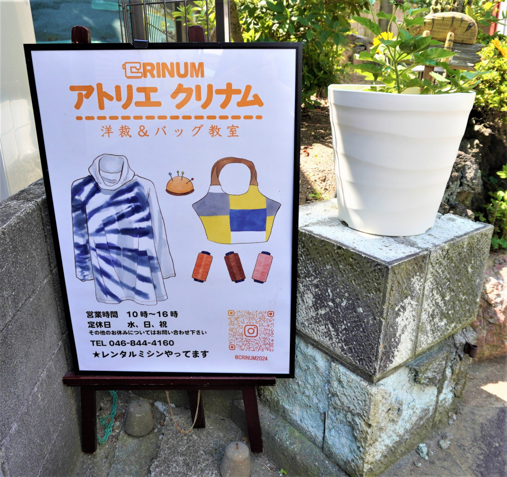 久里浜にある「アトリエ crinum(クリナム)」は、少人数制の洋裁教室です。