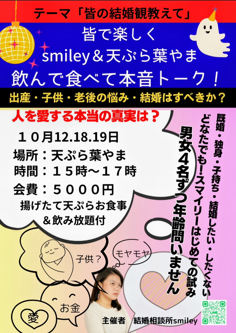 出会いのきっかけづくりや、結婚について気軽に語り合えるイベントを多数開催している「結婚相談所smiley(スマイリー)」では、10月もイベント盛りだくさん!