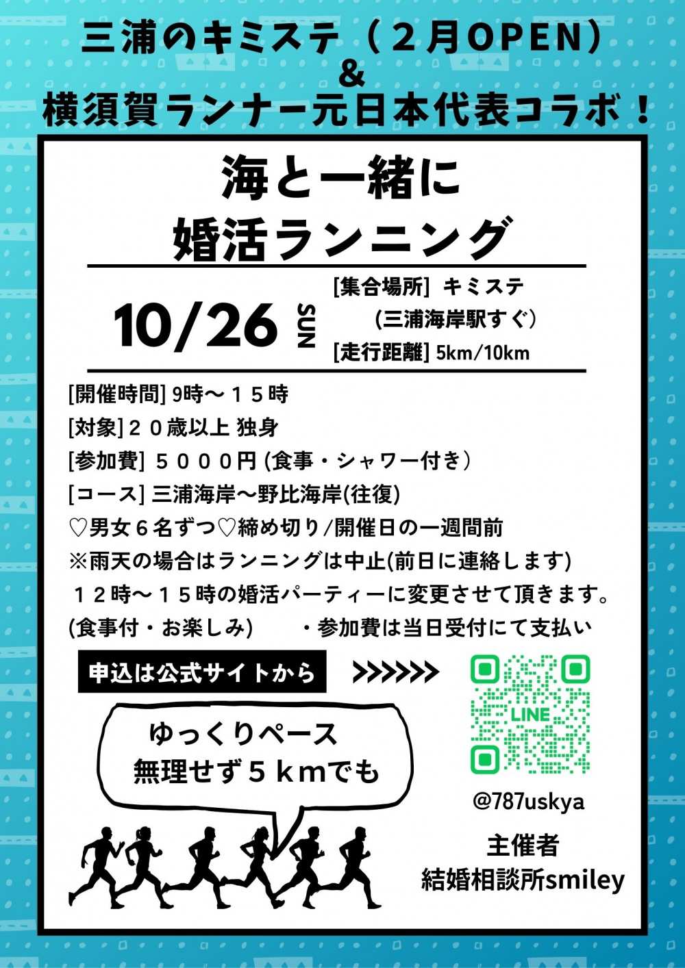 ※雨天時はランニングを中止し、12:00~15:00の婚活パーティーに変更となります。