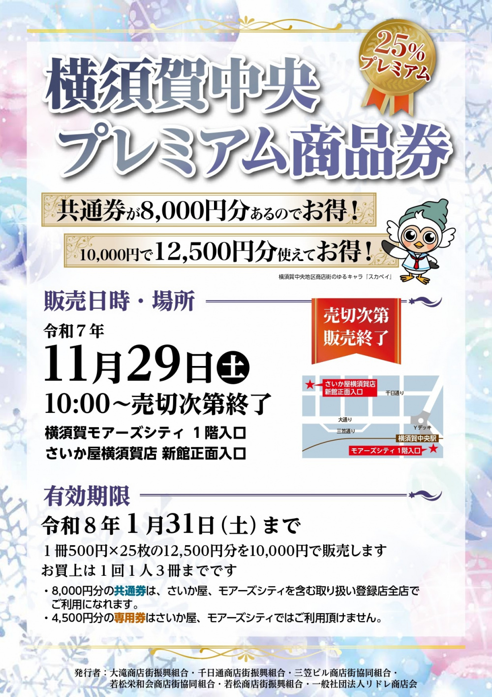<11/29>「横須賀中央プレミアム商品券」発売! 1万円で1万2500円分のお買い物! 三笠ビル商店街協同組合