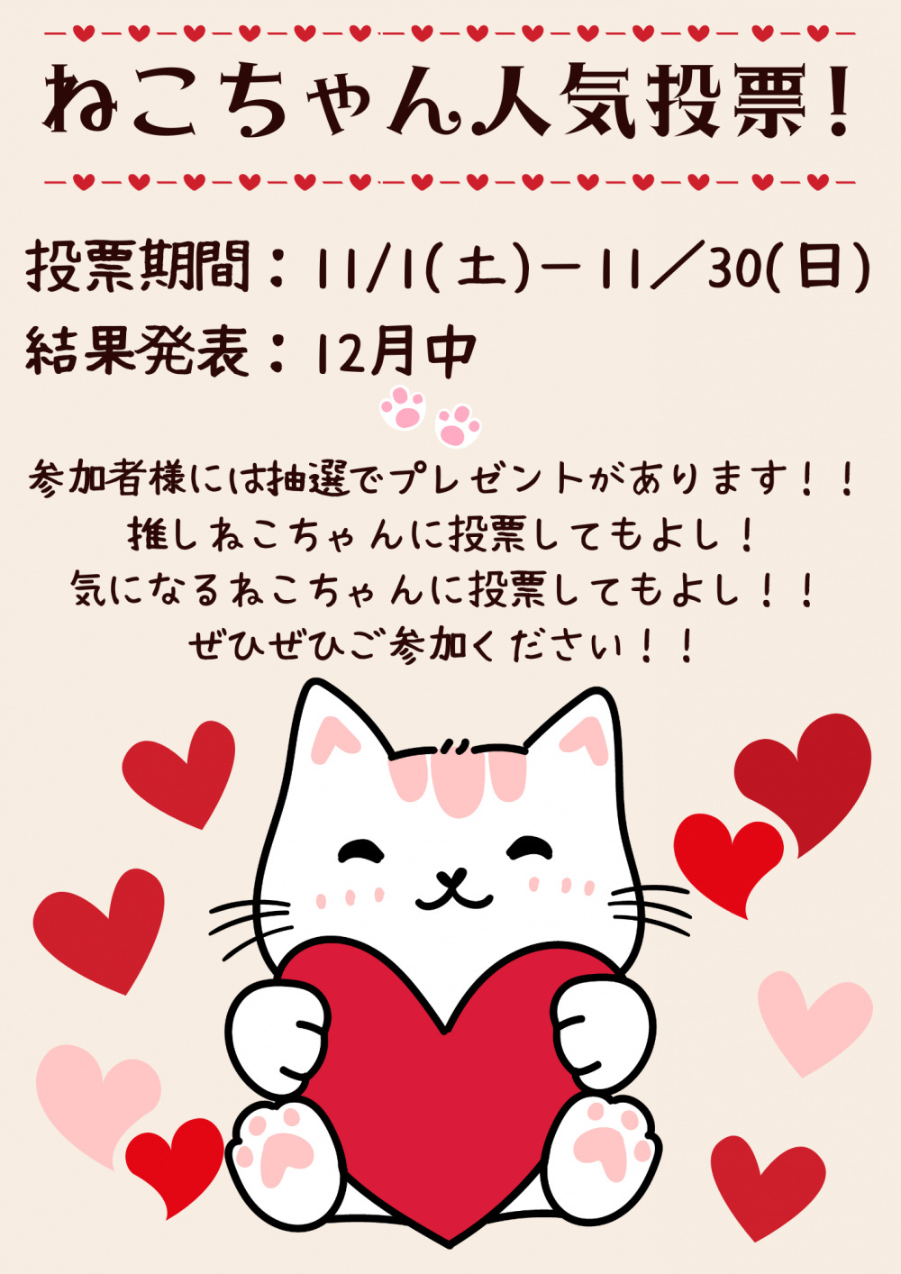 「ねこちゃん人気投票」開催中!お気に入りの子に投票しよう♪
