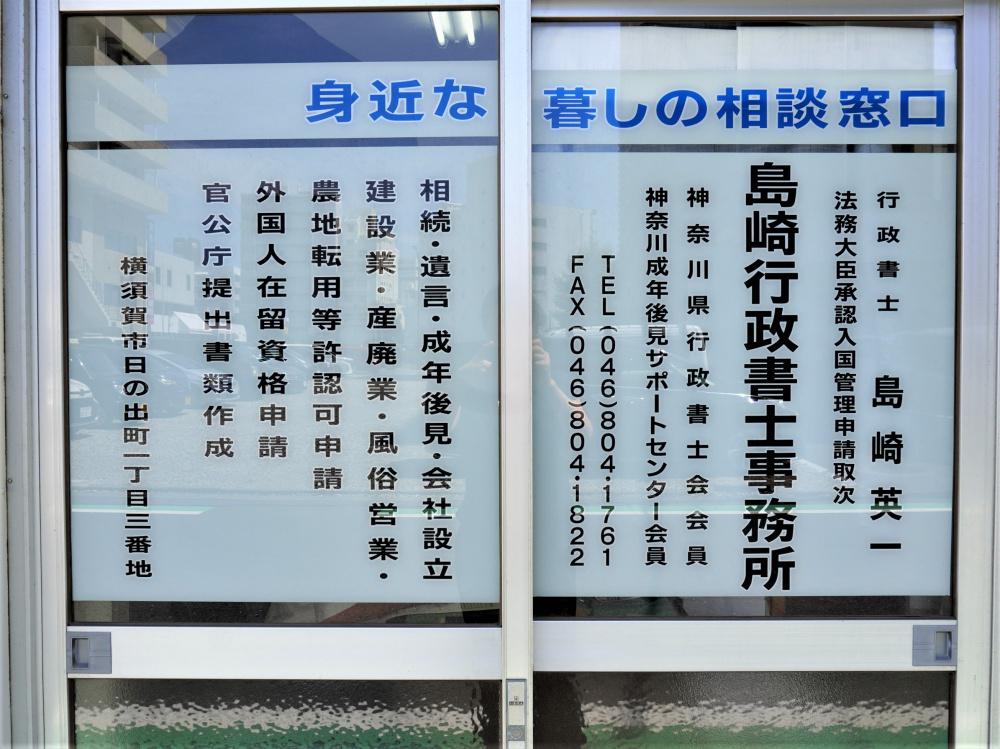 横須賀市役所近くにある「島崎行政書士事務所」は、暮らしと事業のお悩みに寄り添う、地域密着型の行政書士事務所です。