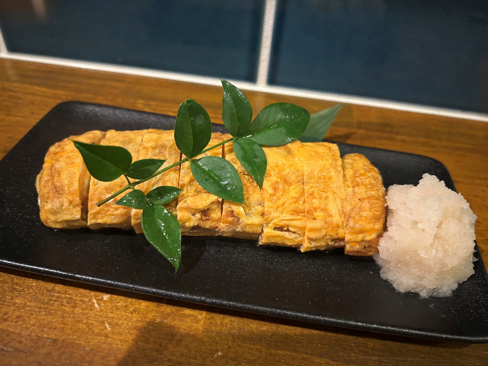 平飼いで育てられた岩沢ポートリーの「姫様の卵」を使った特製のだし巻き卵は、お店の名物。