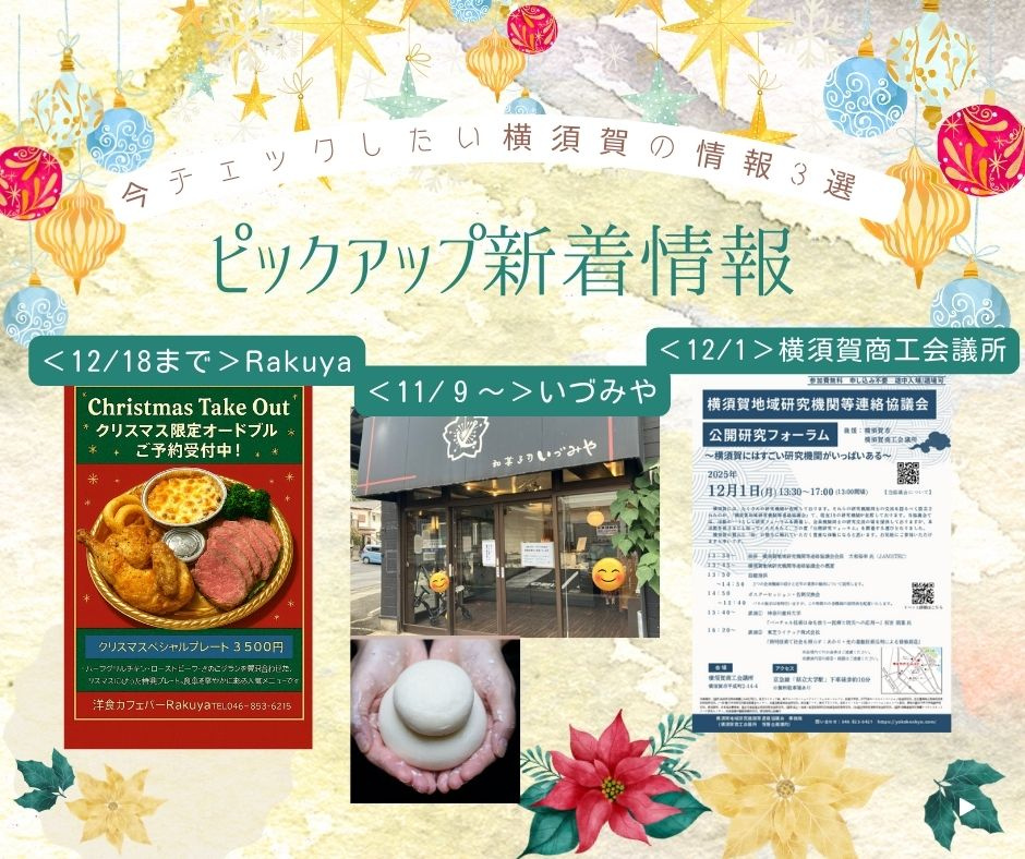 【ピックアップ新着情報】クリスマスグルメ&再開ニュース&注目イベント、今チェックしたい横須賀の3つの話題!