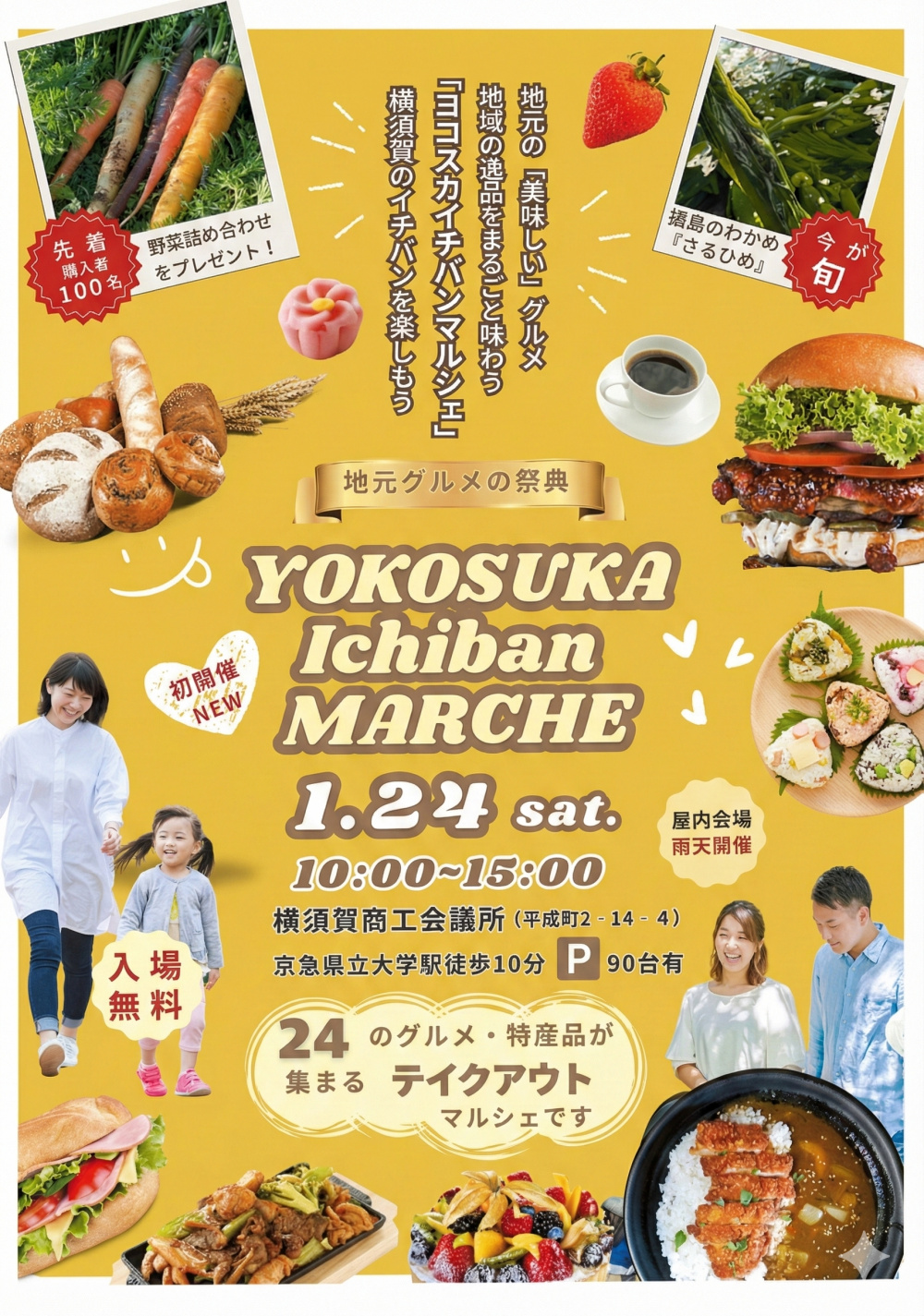 【イベント告知】横須賀の「美味しい」が勢揃い!地元グルメの祭典「ヨコスカイチバンマルシェ」1月24日(土)初開催!