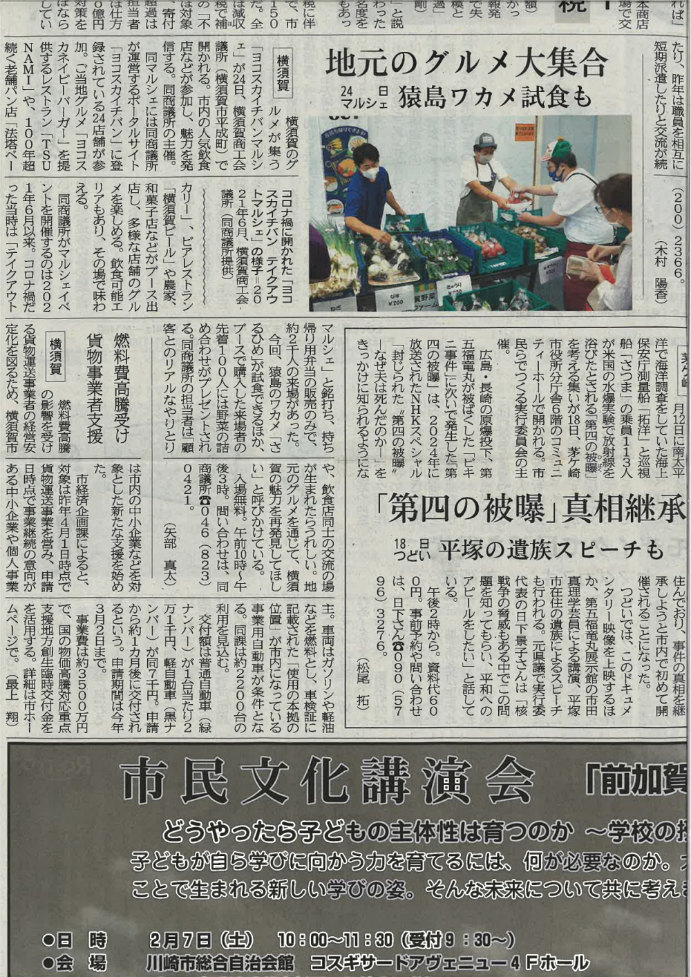 神奈川新聞掲載(令和8年1月15日)「ヨコスカイチバンマルシェ」