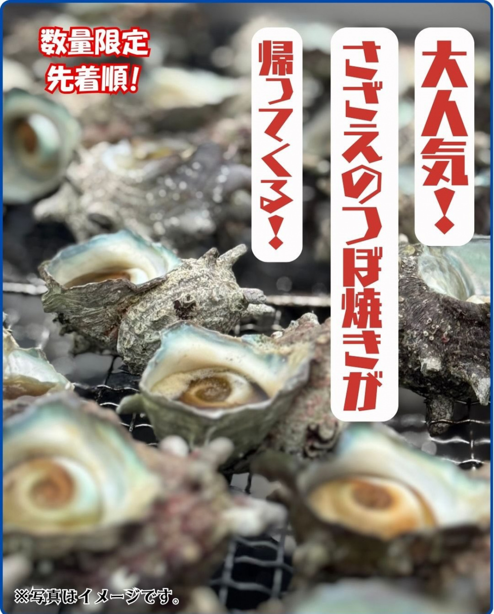 1月の無料ふるまいは、大好評だった「さざえのつぼ焼き」が登場!