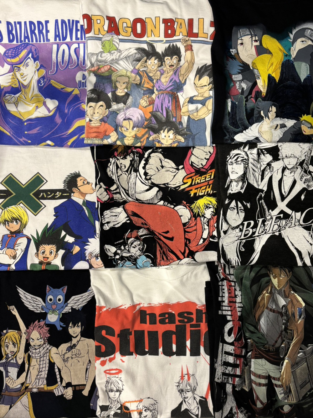 ドラゴンボールやナルトなどの人気アニメ、ミッキーやガーフィールドといった海外キャラクター、さらにバンドTシャツまでジャンルも多彩。思わず手に取りたくなる一枚に出会えるはずです。