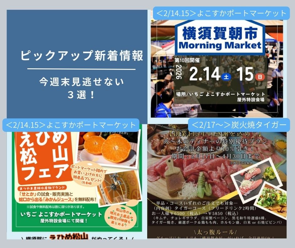【ピックアップ新着情報】見逃せない3選!朝市・松山フェア・横須賀市民割情報!