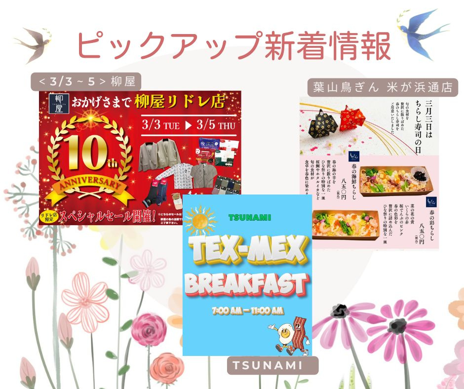 【ピックアップ新着情報】春を楽しむ最新情報3選ーひな祭り・モーニング・10周年セール!