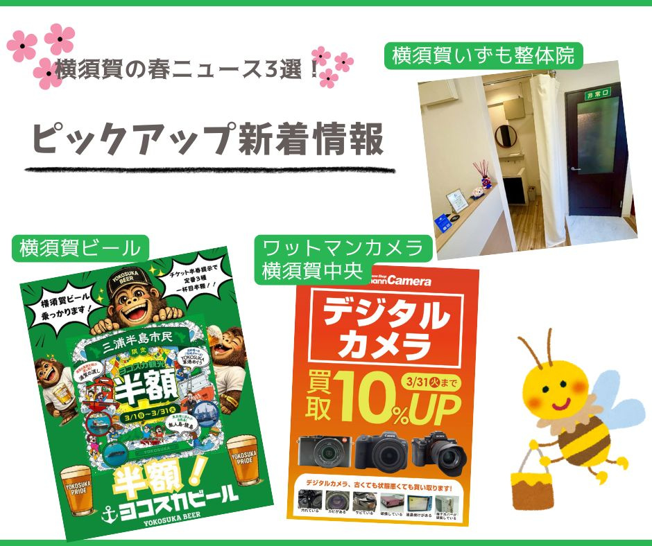 【ピックアップ新着情報】受賞ビール半額&買取UP・通いやすさ向上 横須賀の春ニュース3選