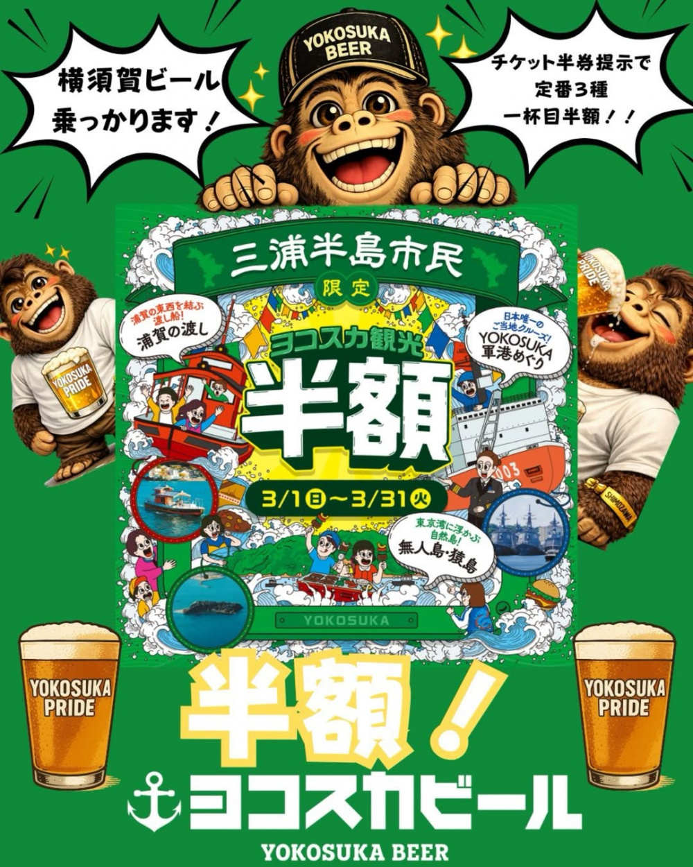 「三浦半島市民限定 ヨコスカ観光半額キャンペーン」がスタート。