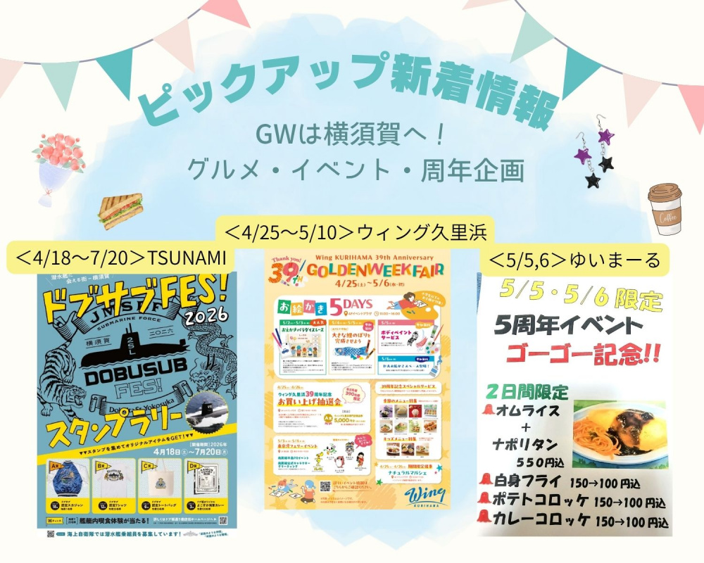 【ピックアップ新着情報】GWは横須賀へ!グルメ・イベント・周年企画まとめ3選
