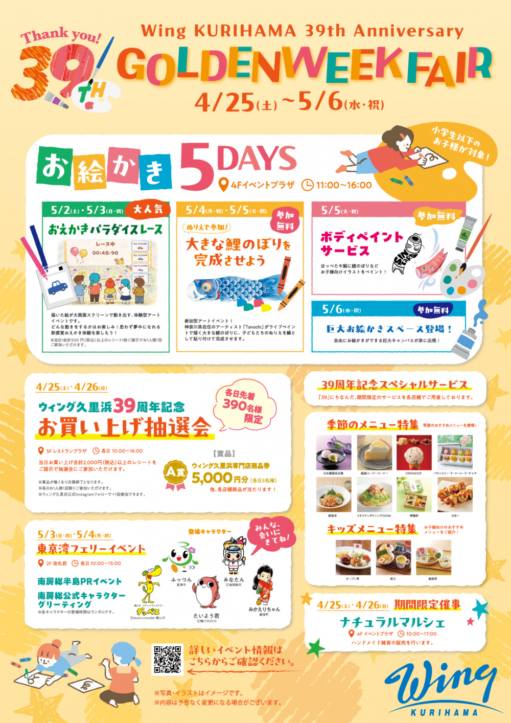 <4/25~5/6>大人も子どもも楽しめる!ウィング久里浜39周年フェア開催 ウィング久里浜