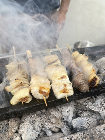 焼き鳥は紀州備長炭を使用。鶏肉は鳥取県から大山鶏を仕入れています。